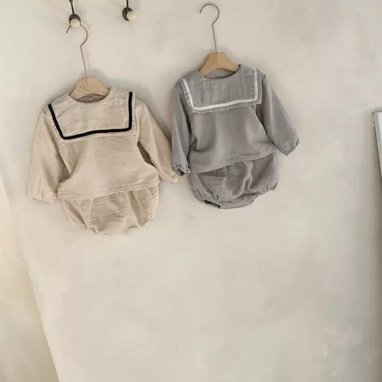 かわいらしいセーラー襟が魅力的な韓国風ベビー服セット!