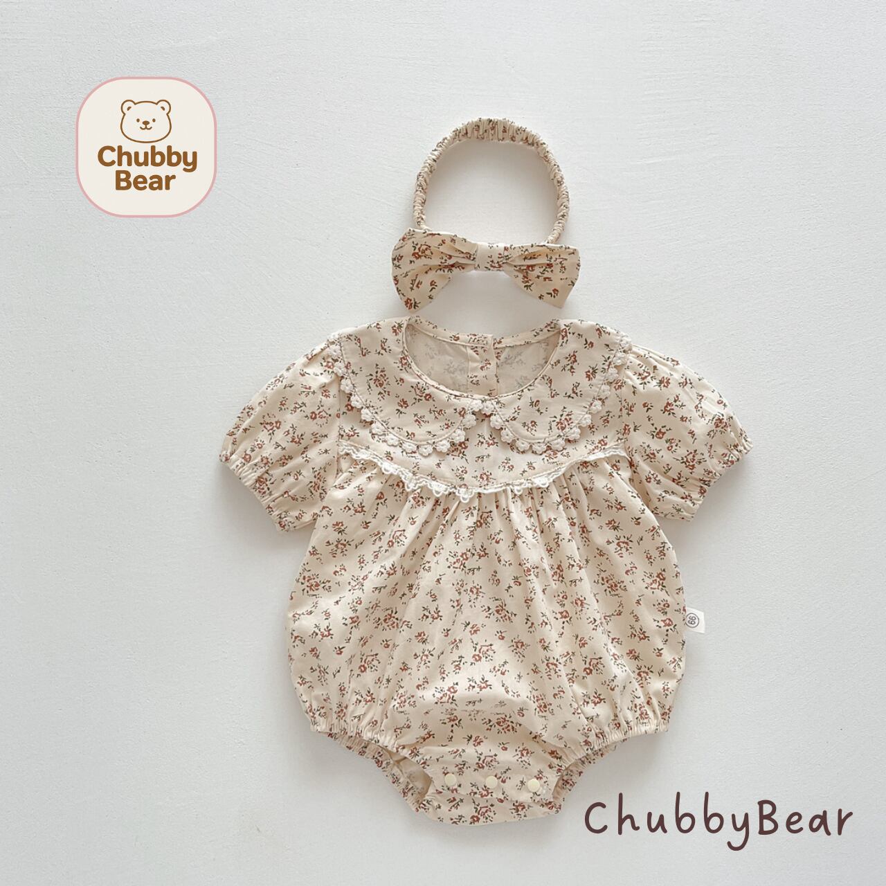 【66〜90cm】可愛さ満点♡小花柄レースロンパース ヘアバンド付き ベビー服 女の子