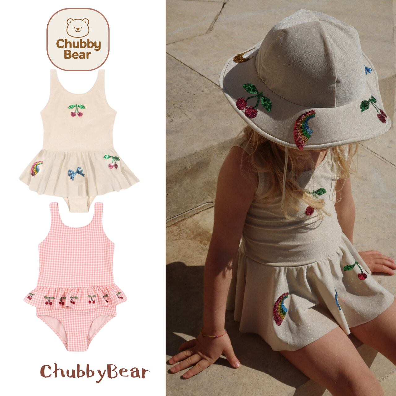 【80〜130cm】スパンコール さくらんぼ キッズ水着 ワンピース 女の子 ベビー 韓国風 スイムウェア ピンク ナチュラルカラー
