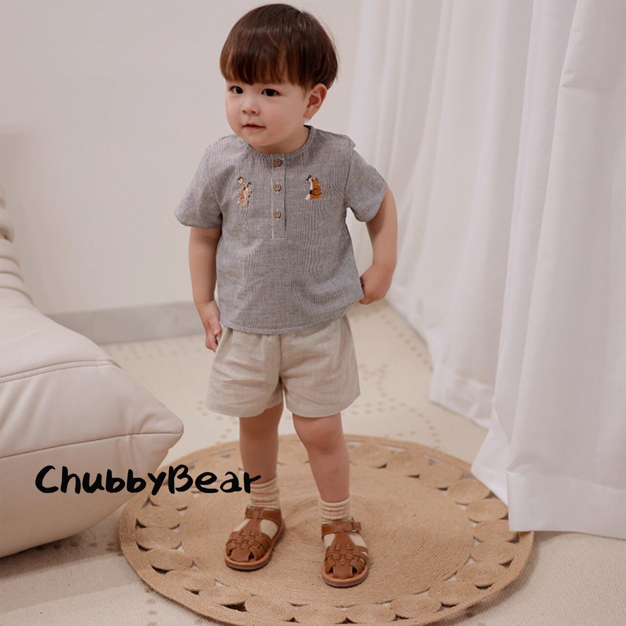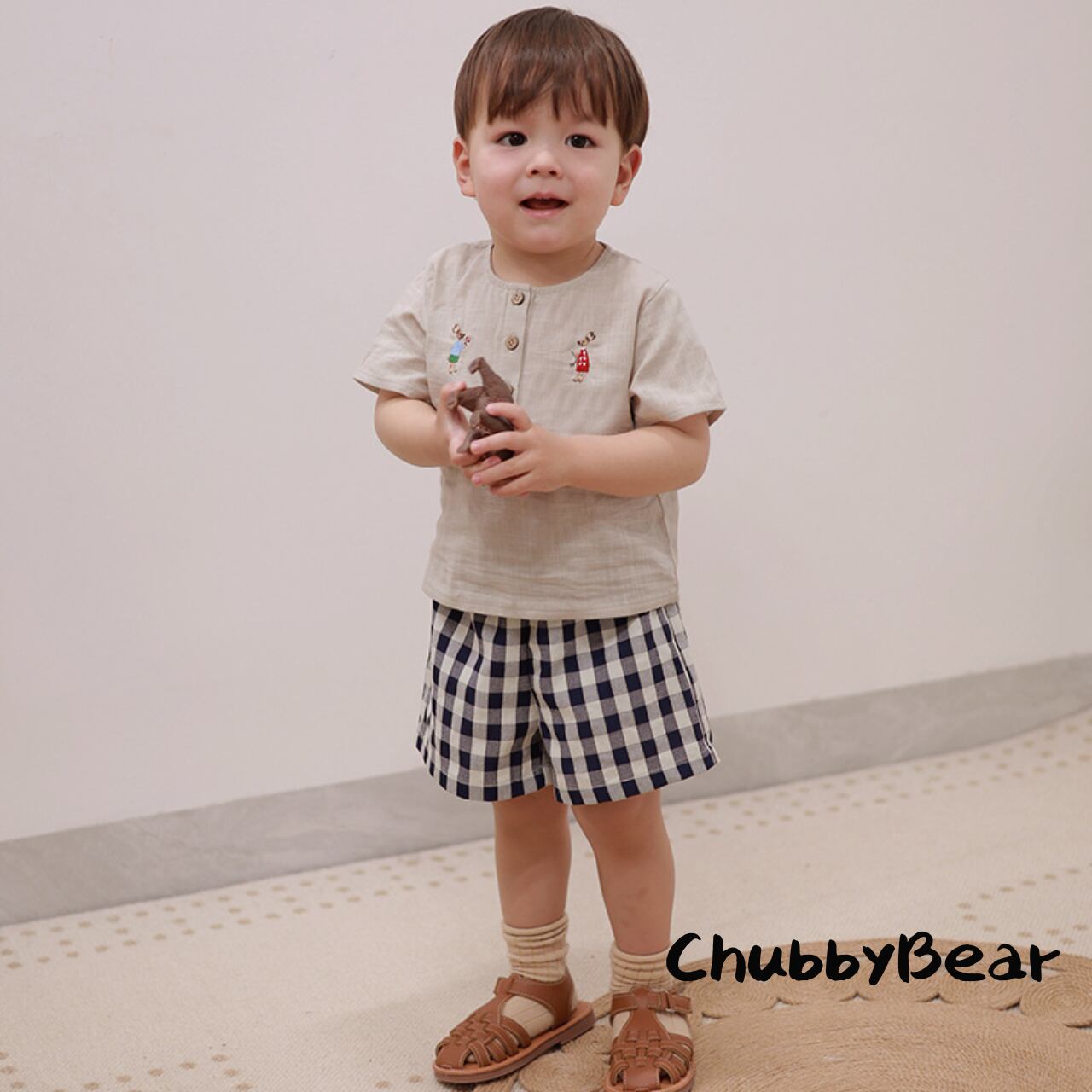 【80〜120cm】ナチュラル刺繍キッズTシャツ コットン半袖 ベビー服 子供服 韓国風 シンプル 夏服