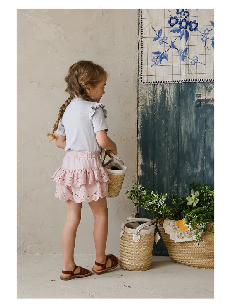 ナチュラルカラーが魅力のフリルスカートに見えるショートパンツです。
