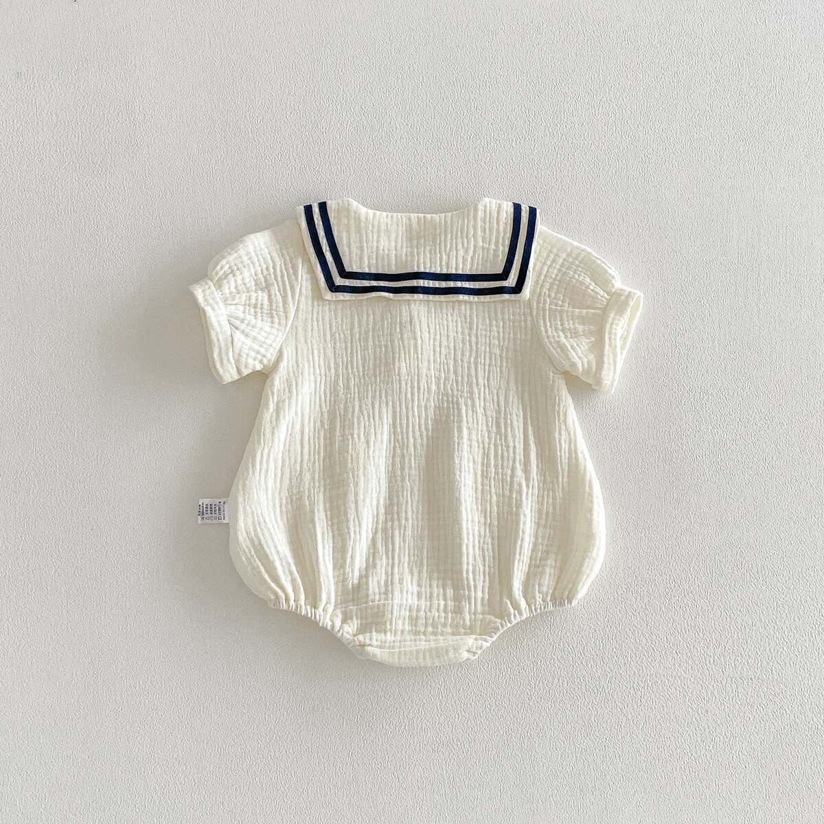【66〜90cm】セーラーカラー ベビーロンパース 韓国風 ナチュラル 赤ちゃん 夏服 マリン 可愛い