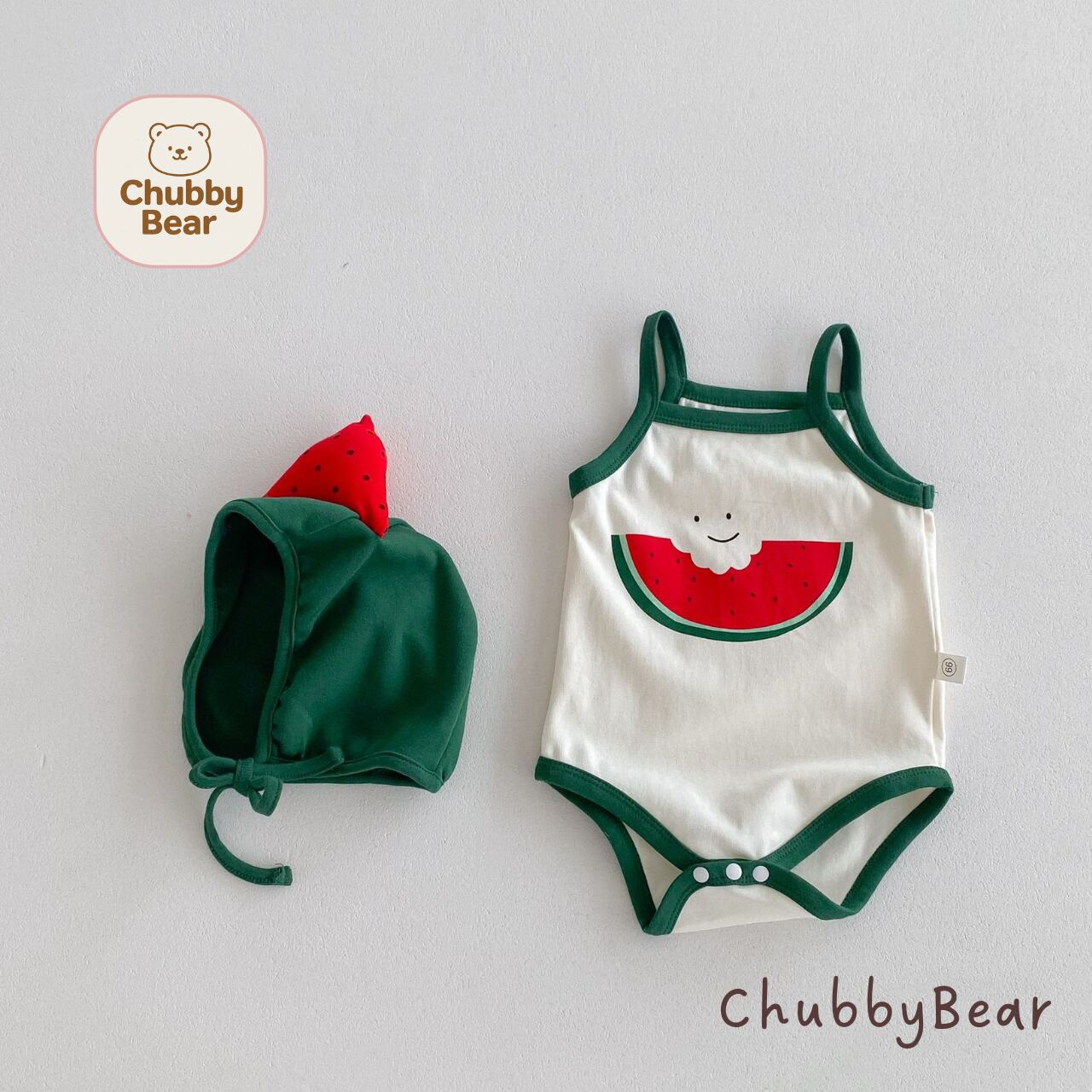 【66〜90cm】スイカデザインベビーロンパース 帽子付き 韓国風 夏コーデ 可愛い 赤ちゃん服