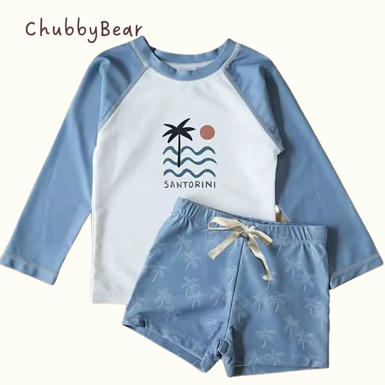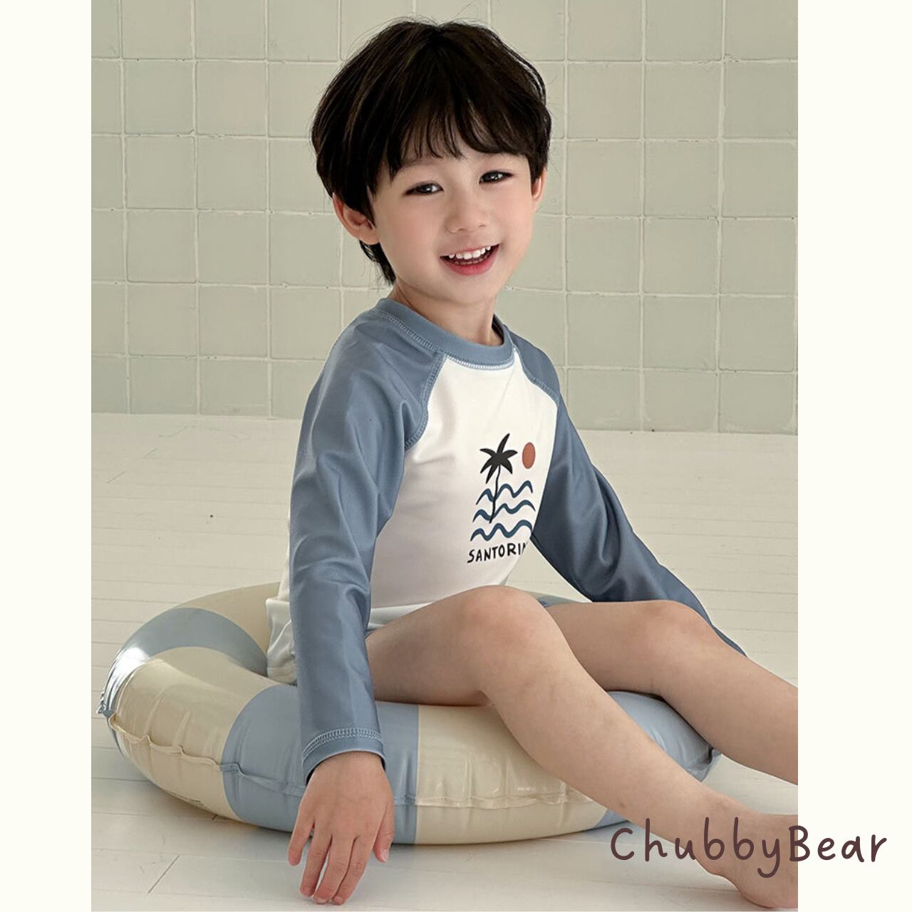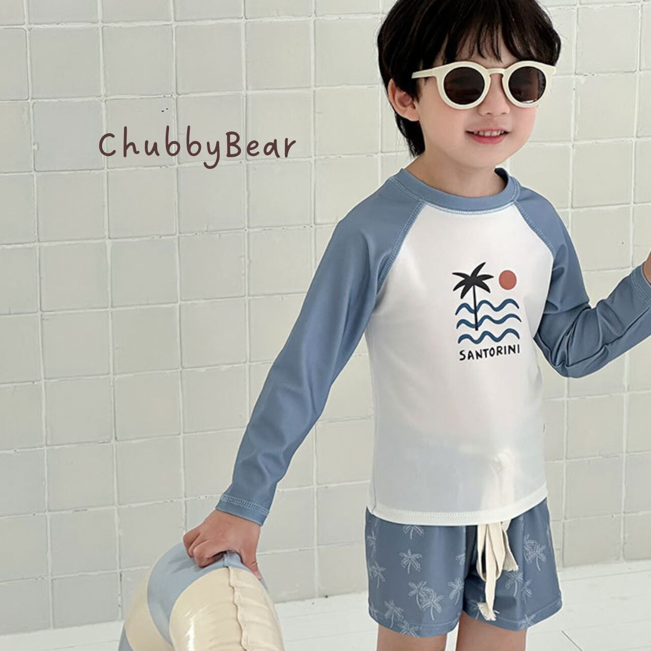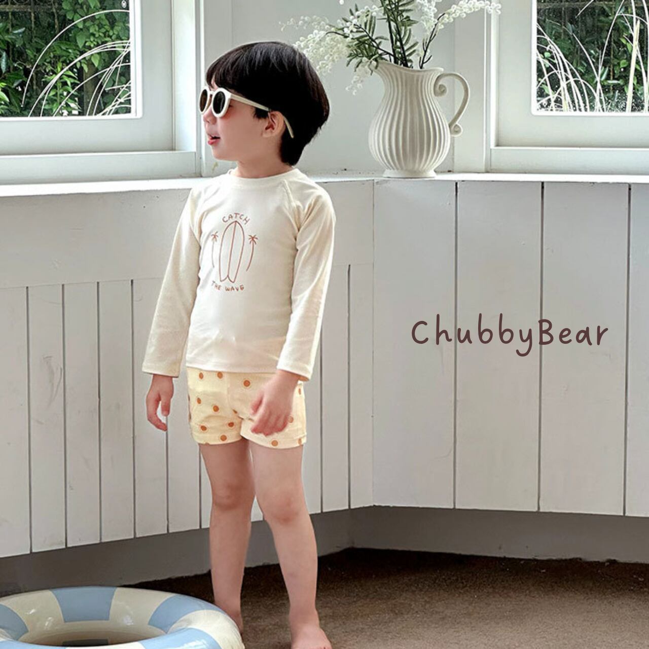 【100〜150cm】男の子用 ナチュラルカラー 長袖ラッシュガード×ショートパンツセット