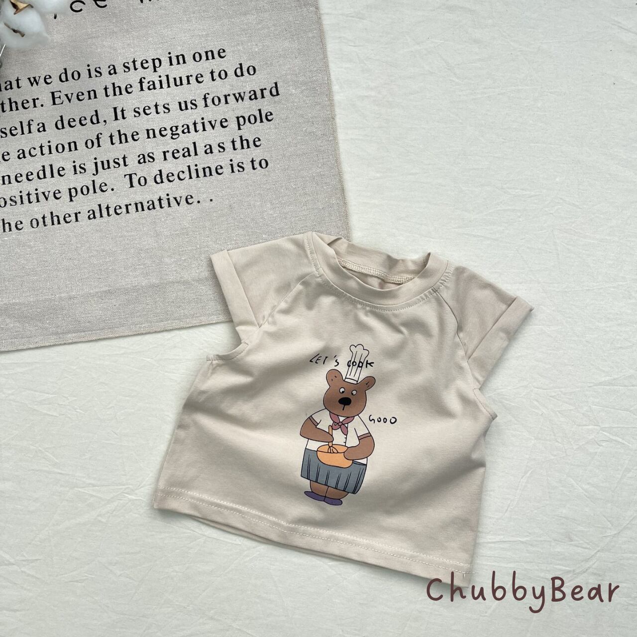 やさしいベージュカラーのくまさんTシャツに、